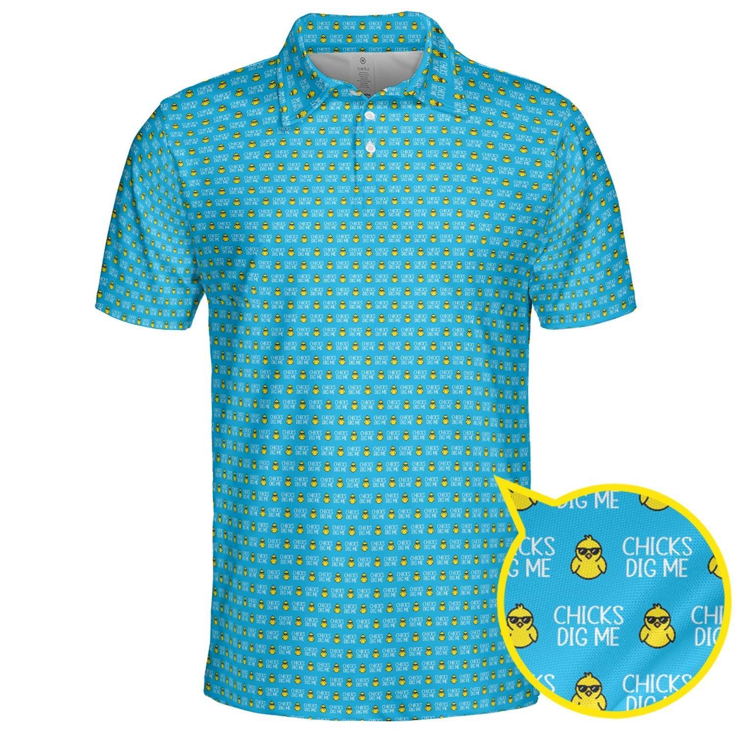Easter Polo Shirts for Men Chicks Dig Me Funny Moisture Wicking Short Sleeve Golf Top