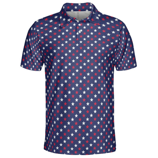 4th of July Blue Polo Patriotic Golf Shirt for Men Red and White Stars Moisture Wicking Summer Top