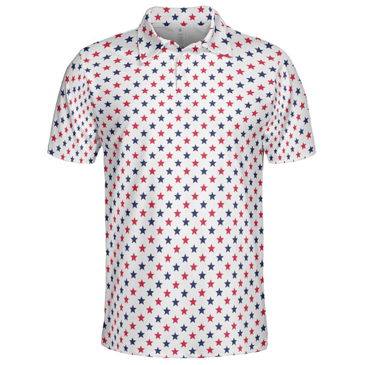 4th of July White Polo Patriotic Golf Shirt for Men Red and Blue Stars Moisture Wicking Summer Top