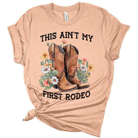 Ain't My First Rodeo Floral Boots Shirt Cute Country Short Sleeve Tops Cowgirl Graphic Tees Western Shirts for Women