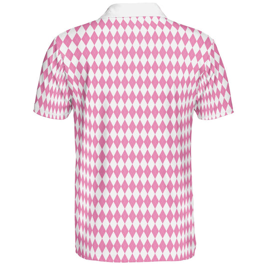Bavarian Diamond Polo Shirt for Men Pink White Checkered Moisture Wicking Short Sleeve Golf Top