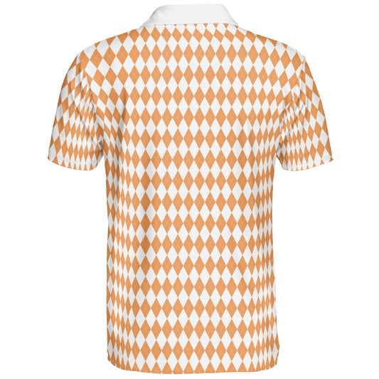 Bavarian Diamond Polo Shirt for Men Orange White Checkered Moisture Wicking Short Sleeve Golf Top