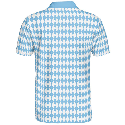 Bavarian Diamond Polo Shirt for Men Blue White Checkered Moisture Wicking Short Sleeve Golf Top