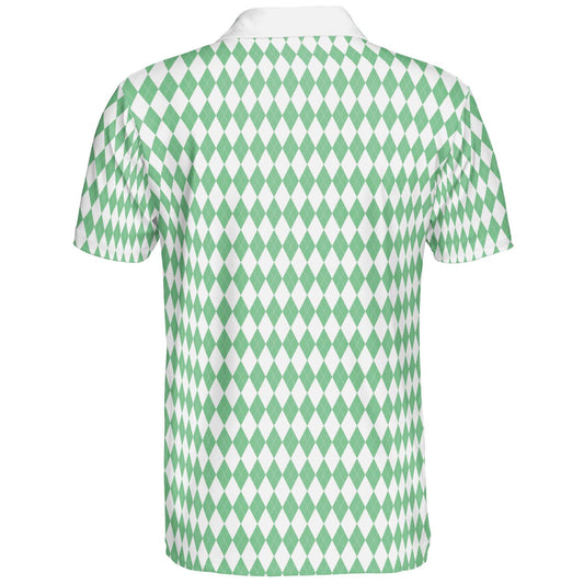Bavarian Diamond Polo Shirt for Men Green White Checkered Moisture Wicking Short Sleeve Golf Top