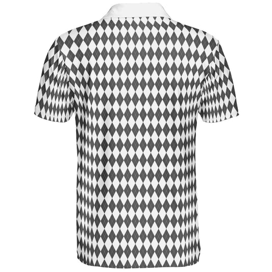 Bavarian Diamond Polo Shirt for Men Dark Grey White Checkered Moisture Wicking Short Sleeve Golf Top