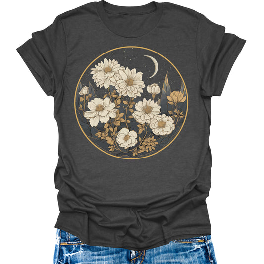 Womens Wildflower Shirt Vintage Graphic Tees Fall Short Sleeve T Shirts Casual Plus Size Tops