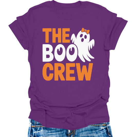 Boo Crew Shirt Halloween T-Shirts for Women Funny Ghost Squad Girls Graphic Tees