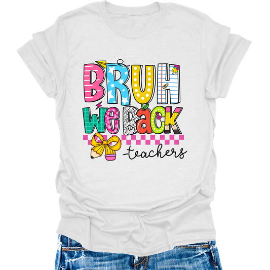 Bruh We Back T-Shirt Teacher Shirts Back to School Cute Graphic Tee Short Sleeve Tops