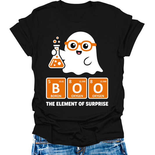 Boo the Element of Surprise Shirt Funny Halloween Teacher T-Shirts for Women Chemistry Science Graphic Tees