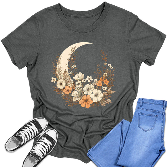 Boys and Girls Trendy Floral Moon Graphic Tees