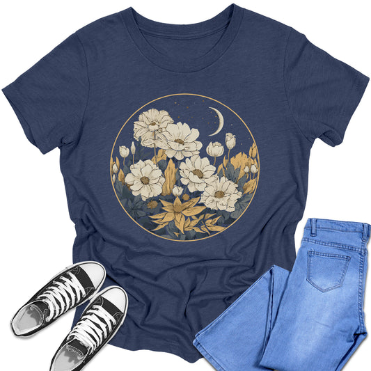 Butterfly Shirt Vintage Cottagecore Wildflowers T Shirt Trendy Moon Graphic Tees for Women