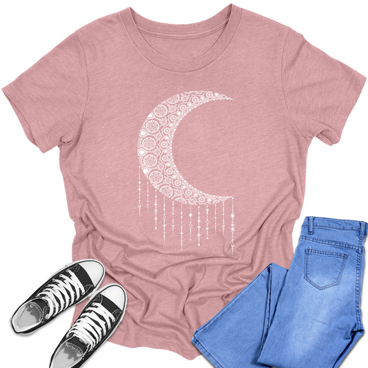 Boys and Girls Trendy Mandala Crescent Moon Graphic Tees