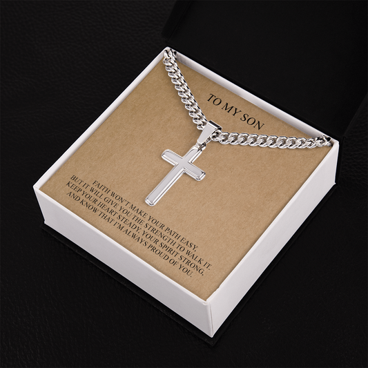 To My Son I'm Always Proud of You Personalized Cross with Cuban Link Chain