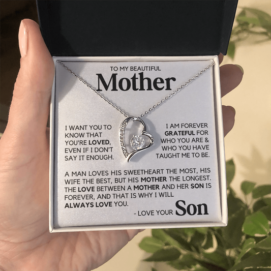 To My Beautiful Mother Gift From Son Mother's Day Forever Love Necklace