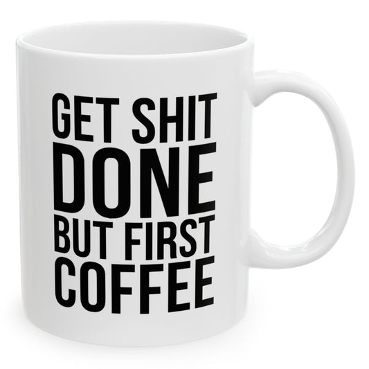 Get Shit Done But First Coffee Funny Birthday Gift 11oz Coffee Mug