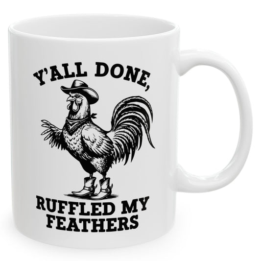 Y'all Done Ruffled My Feathers Funny Western Rooster Sarcastic 11oz Unique Coffee Cup Mug