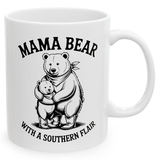 Mama Bear With A Southern Flair Western Bear Cute Mother's Day 11oz Unique Coffee Cup Mug