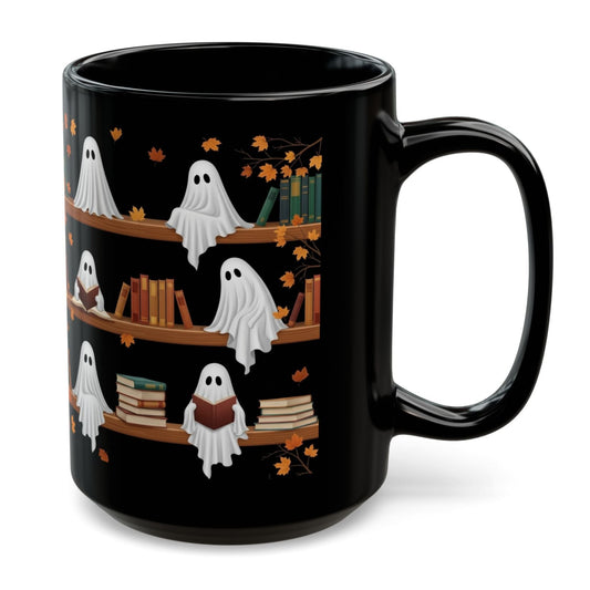 Cute Ghost Read Book Mug - Black Coffee Cup Ceramic Mug 15 Oz - Book Gifts For Women Lover - Inspirational Librarian Teacher Present For Halloween