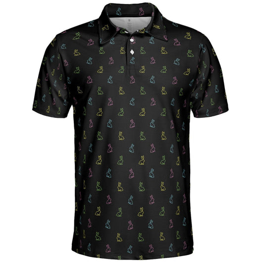 Easter Bunny Polo Golf Shirt for Men Retro Neon Rabbit Print Moisture Wicking Short Sleeve Top