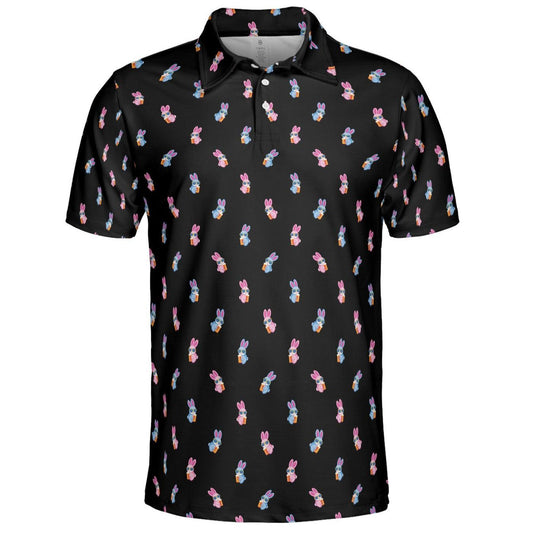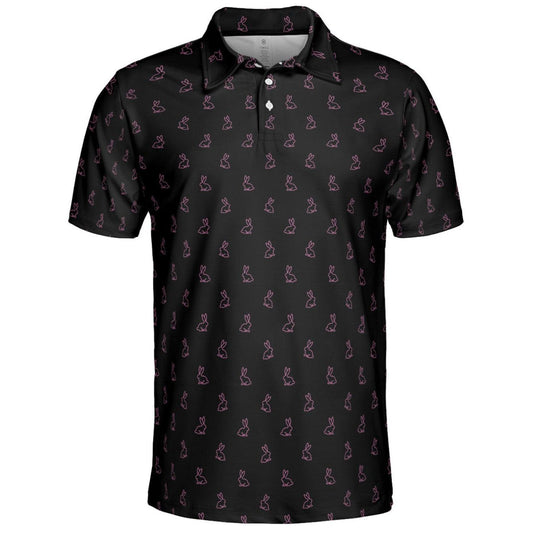 Black Easter Bunny Polo Shirt for Men Cool Pink Rabbit Print Moisture Wicking Short Sleeve Golf Top
