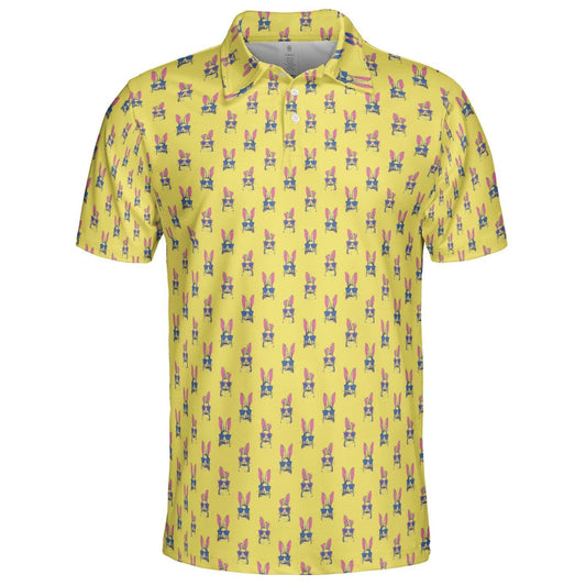 Yellow Easter Polo Golf Shirt for Men Funny Bunny Ears Short Sleeve Moisture Wicking Top