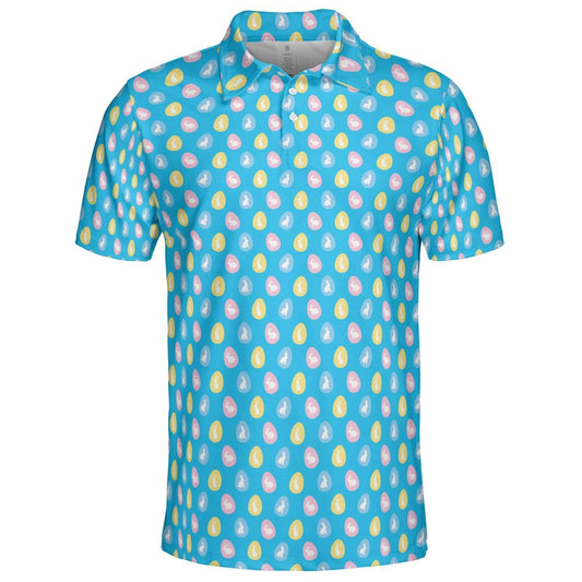 Easter Bunny Egg Polo Golf Shirt for Men Festive Moisture Wicking Short Sleeve Top
