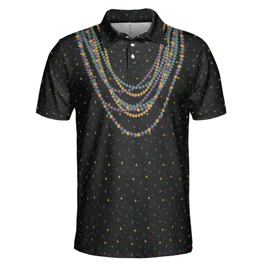 Mardi Gras Polo Shirts for Men Bead Necklace Party Shirt Moisture Wicking Short Sleeve Golf Shirt