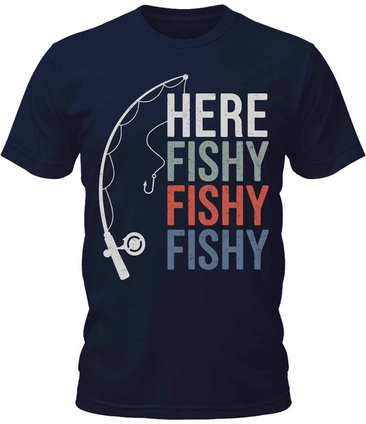 Men's Here Fishy Fishy Fishy Graphic Tee Cool Premium Fishing Tshirt