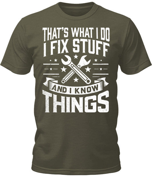 Mens I Fix Stuff And I Know Things Shirt Short Sleeve Premium Funny Graphic Tees