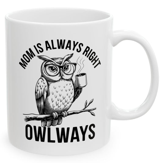 Mom is Always Right Owlways Owl Mug Funny Mother's Day 2025 Gift Mug 11oz Unique Coffee Cup