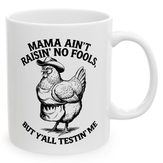 Mama Ain't Raisin' No Fools Funny Western Chicken 11oz Unique Coffee Cup Mug