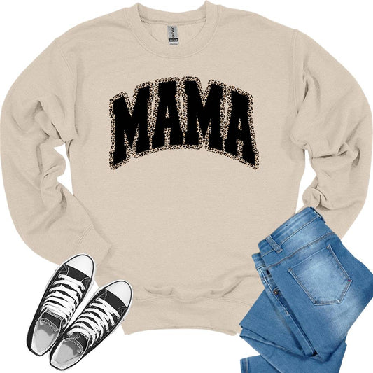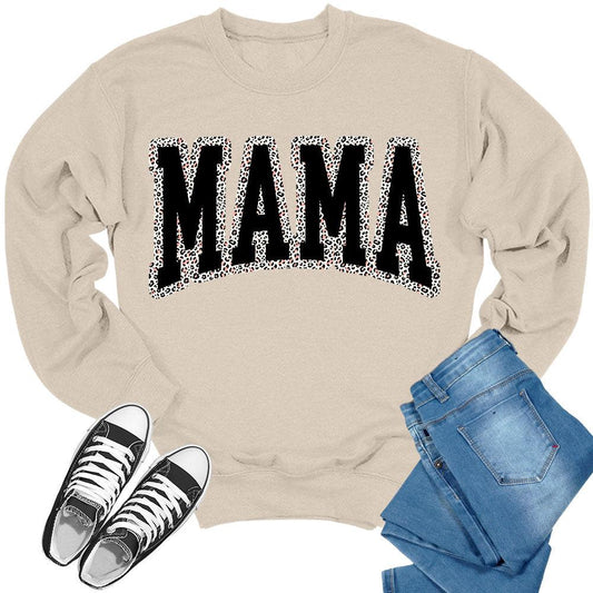Mama Sweatshirt for Women Long Sleeve Leopard Letter Print Graphic Crewnecks