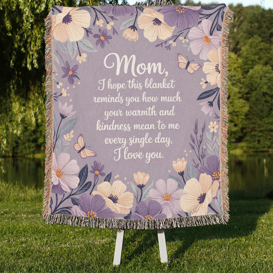 Mom Love You Floral Gift for Mother's Day Gift Purple Woven Blanket - Ships Free