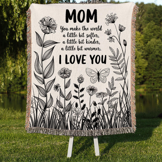 Mom Love You Floral Gift for Mother's Day Gift Woven Blanket - Ships Free