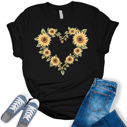 Womens Sunflower Shirts Floral Vintage Heart Graphic Tees Spring Cottagecore T Shirts Bella Summer Tops