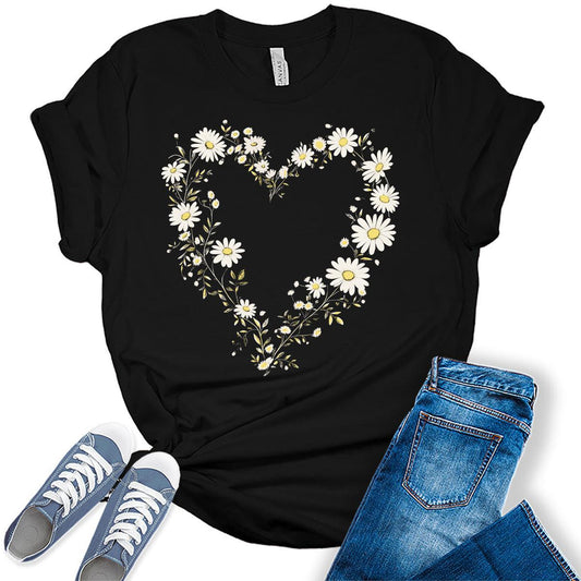 Wildflower Shirts Daisy Heart Womens Graphic Tees Bella Plus Sized Tops