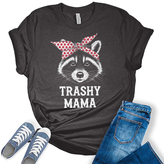 Womens Mama Shirt Trashy Raccoon Mom Vintage Summer Casual Graphic Tees Bella Plus Sized Tops