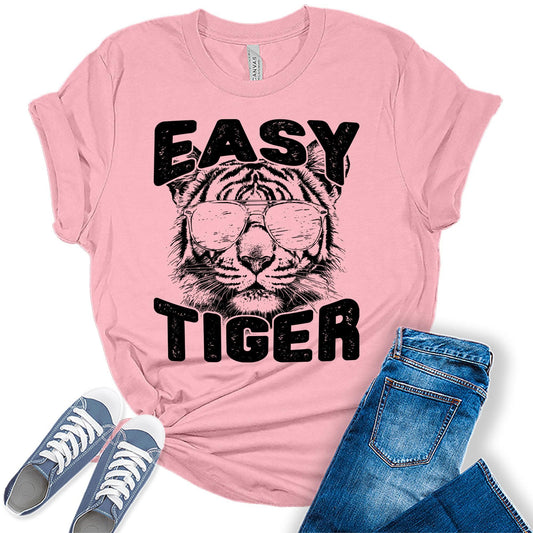 Women's Easy Tiger Shirt Funny Casual Graphic Tees Bella Plus Sized Tops