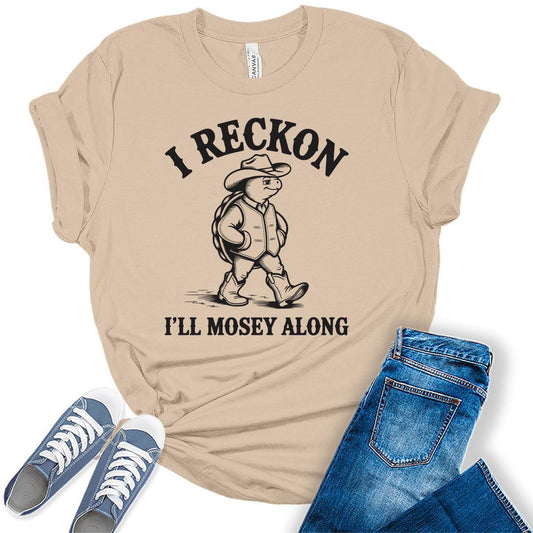 Women's Funny Western Turtle Shirts For Teens I'll Mosey Along Graphic Tees Bella Plus Sized Tops