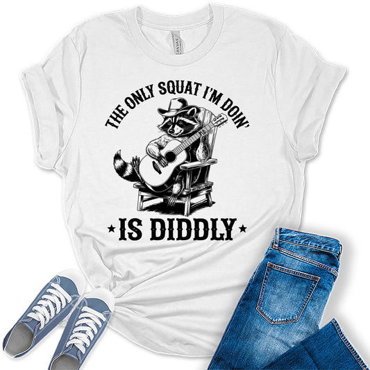 Funny Raccoon Shirt The Only Squat I'm Doin' Is Diddly Casual Graphic Tees Bella Plus Sized Tops