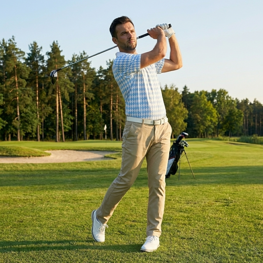 Bavarian Diamond Polo Shirt for Men Blue White Checkered Moisture Wicking Short Sleeve Golf Top