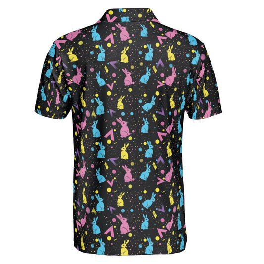 Easter Bunny Egg Polo Golf Shirt for Men Festive Moisture Wicking Short Sleeve Top