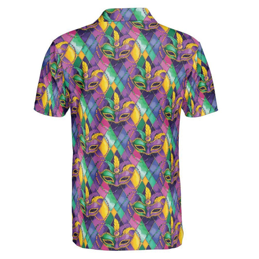 Mardi Gras Polo Shirts for Men Mask Party Shirt Moisture Wicking Short Sleeve Golf Shirt