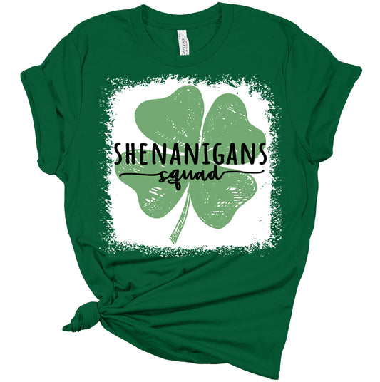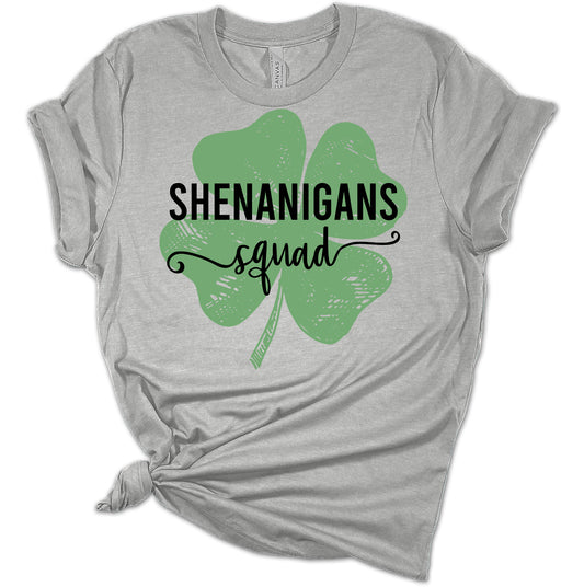 Shenanigans Squad Shirt St Patricks Day T-Shirt Bella Irish Clover Graphic Print Shirts for Women