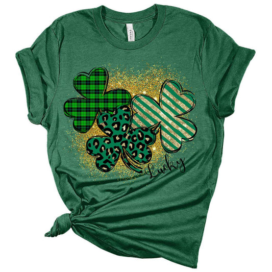 Lucky Shamrocks St Patricks Day Shirt Bella Irish Graphic Print Shirts for Women