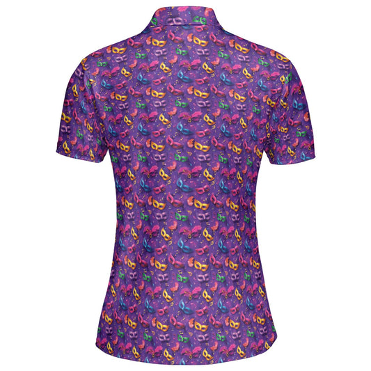 Mardi Gras Polo Shirt for Women The Masquerade Moisture Wicking Short Sleeve Golf Top