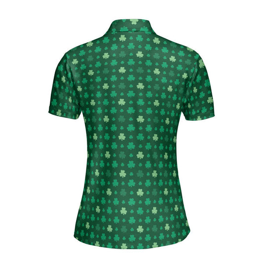 St Patricks Day Polo Golf Shirt for Women Lucky Four Leaf Clover Gold Accents Moisture Wicking Short Sleeve Top