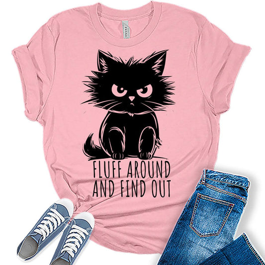 Womens Fluff Around and Find Out Cat Tshirt Girls Funny Graphic Tee Shirts