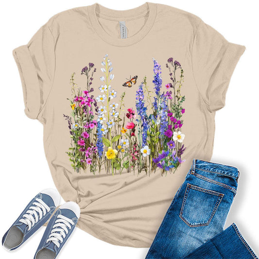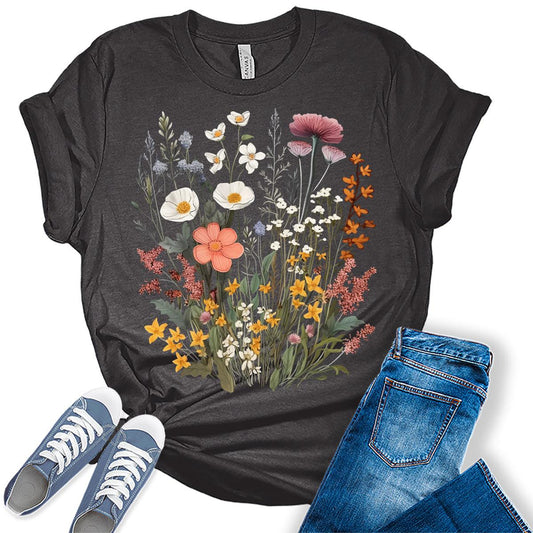 Boho Shirts for Women Vintage Floral Wildflowers T Shirts Floral Trendy Graphic Tees