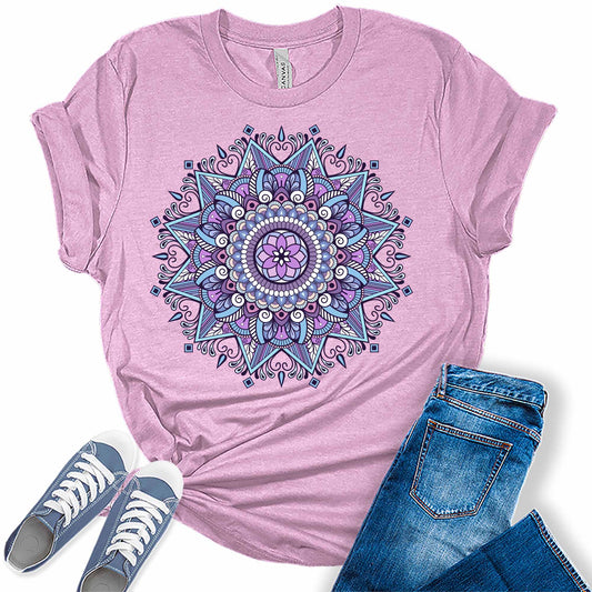 Purple Mandala Shirt Casual Vintage Graphic Tees for Women Short Sleeve Plus Size Summer Tops